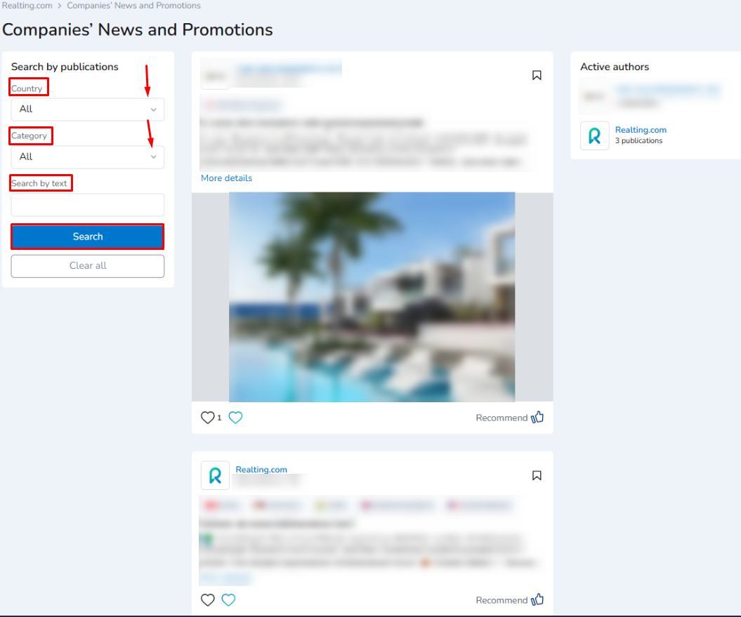 For convenience, we recommend using the filters in the "Search by publications" field to find news in your personal account.