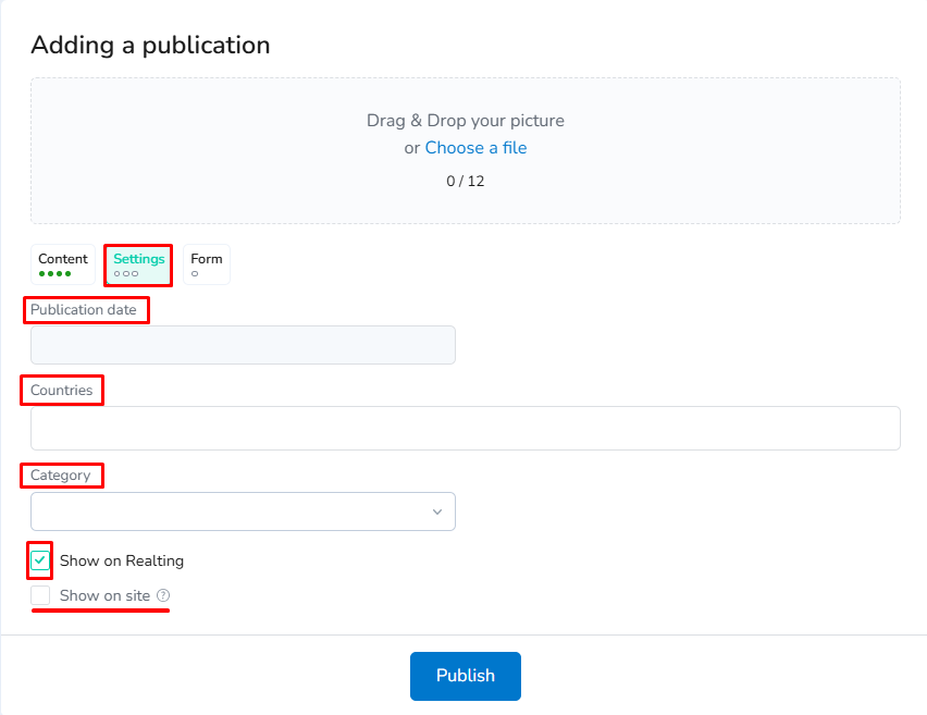 • "Show on website" - the news item will also be published on your website based on Realting.com.
