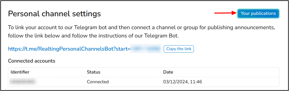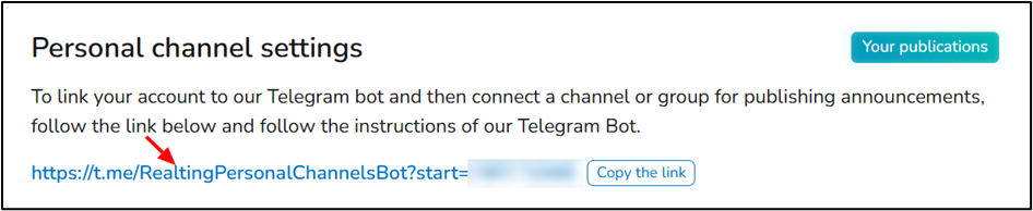 - Login to your personal account on Realting.com: Go to the “Settings” - “Publications” section in your personal account.