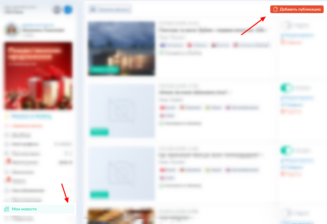 В правом верхнем углу нажмите кнопку «Добавить новость».