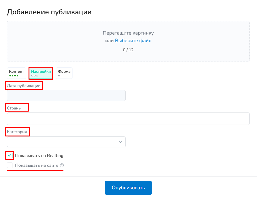 «Показывать на сайте» - новость будет также опубликована на Вашем сайте (на базе Realting.com).