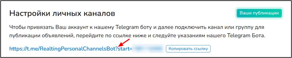 2. Настройки личных каналов: В настройках найдите раздел «Настройки личных каналов» и нажмите на указанную ссылку для подключения вашего канала или группы.