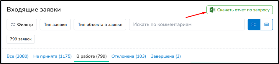 2. В правом верхнем углу нажмите кнопку  «Скачать отчёт по запросу» .