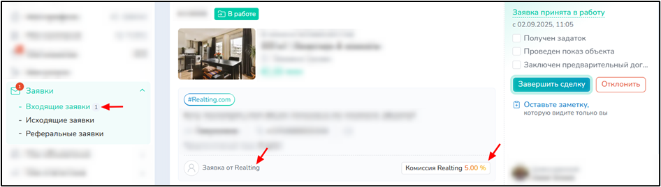 Если в заявке указана метка «Комиссия Realting », это значит, что она поступила от платформы Realting. Такие заявки поступают от покупателей, привлеченных в результате дополнительного продвижения ваших объектов и из других источников.