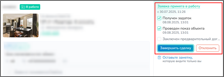 Если заявка не принята в работу — вы увидите статус «Заявка на модерации».
